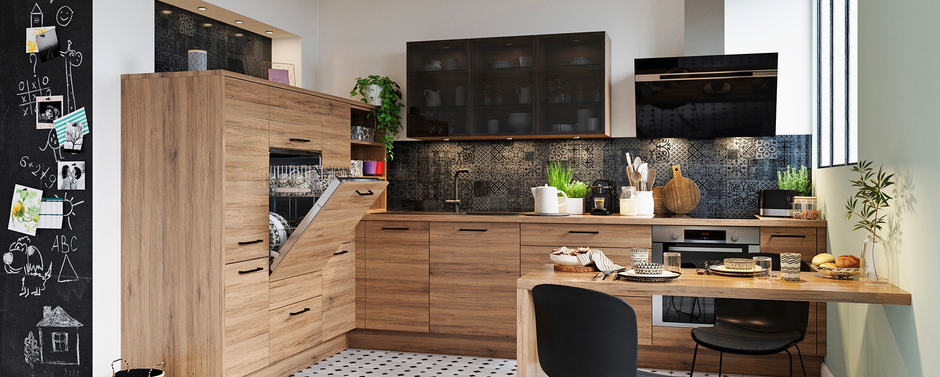 Une Cuisine Amenagee Bois Et Noir Metalfire Universal